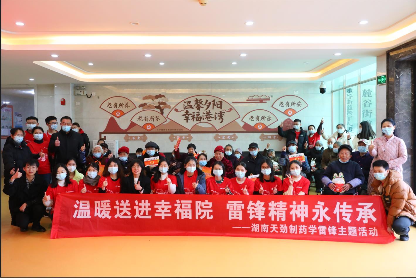 在全国学雷锋月之际,天劲制药党支部及团支部走进长沙高新区麓谷街道敬老院开展“学雷锋、送温暖、献爱心”志愿者服务活动。