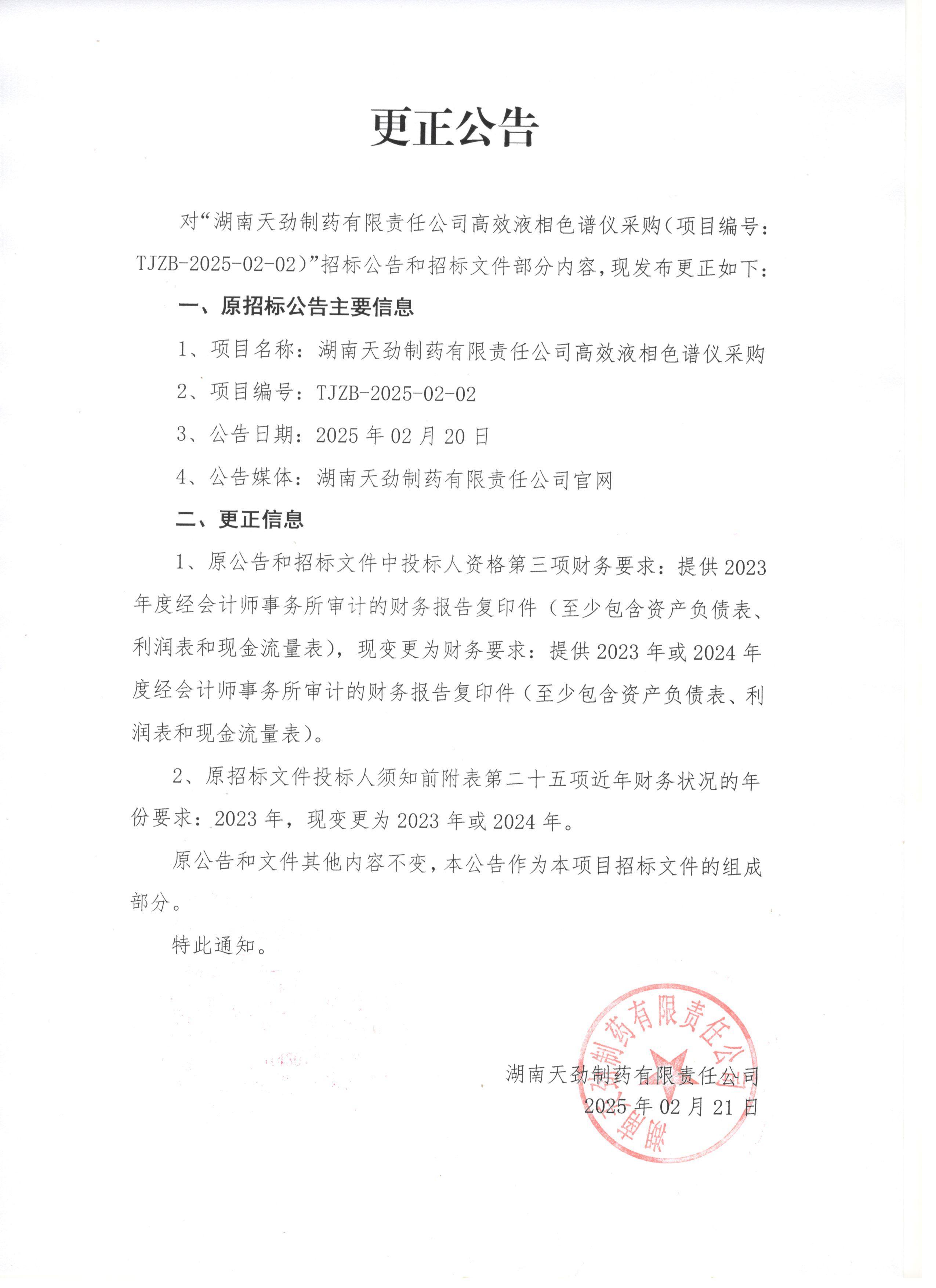 湖南天劲制药有限责任公司高效液相色谱仪采购招标公告