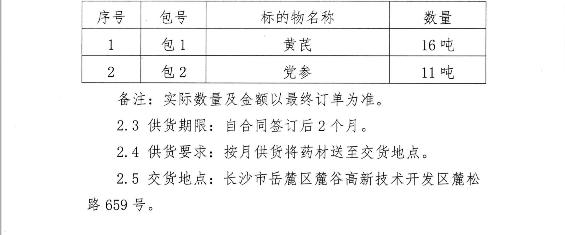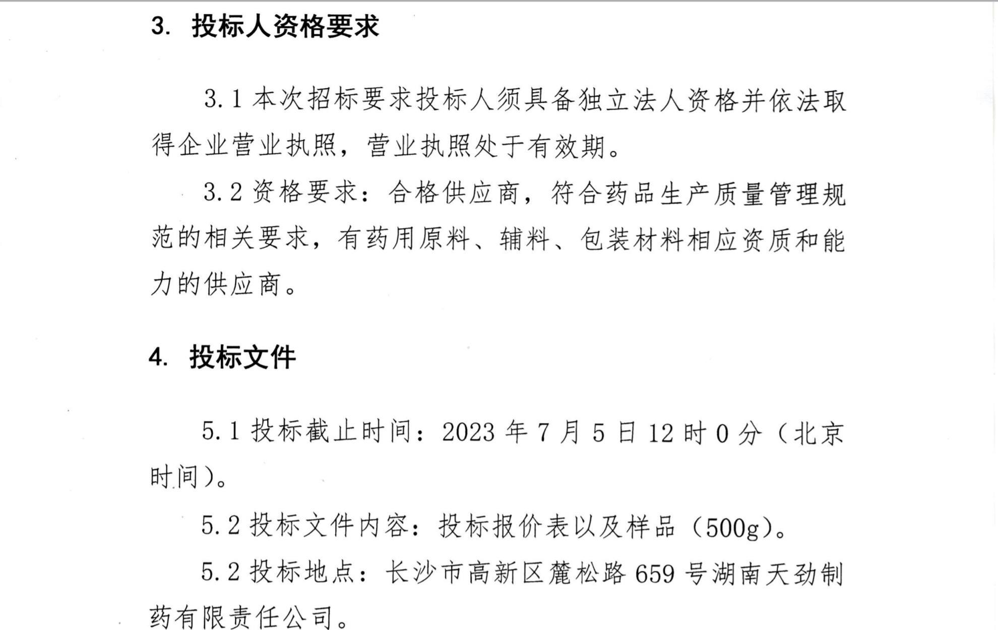 湖南天劲制药有限责任公司药材采购招标公告