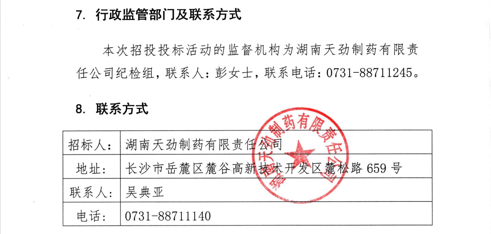 湖南天劲制药有限责任公司中标候选人公示