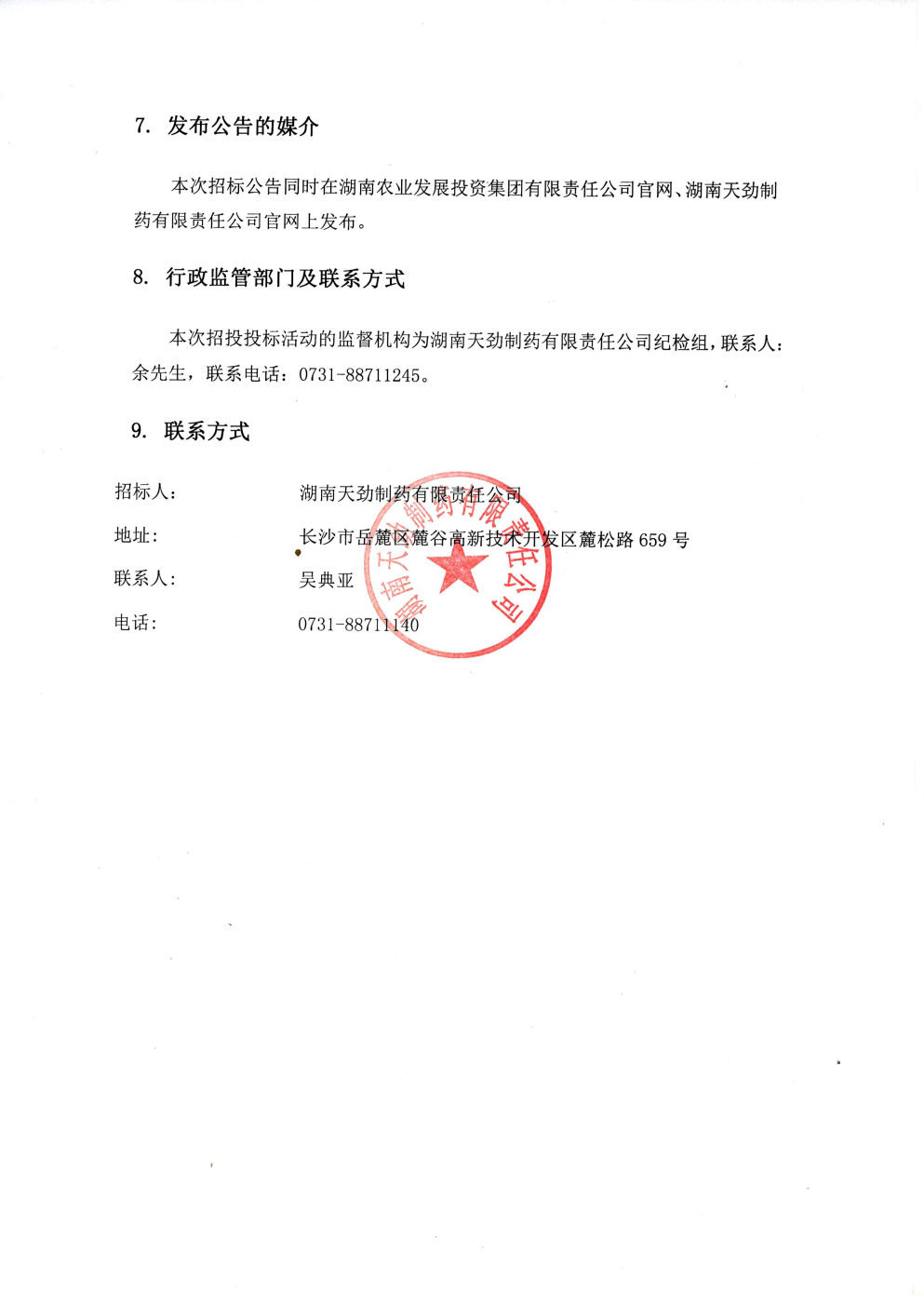 湖南天劲制药有限责任公司药材及药品包装材料采购中标候选人公示