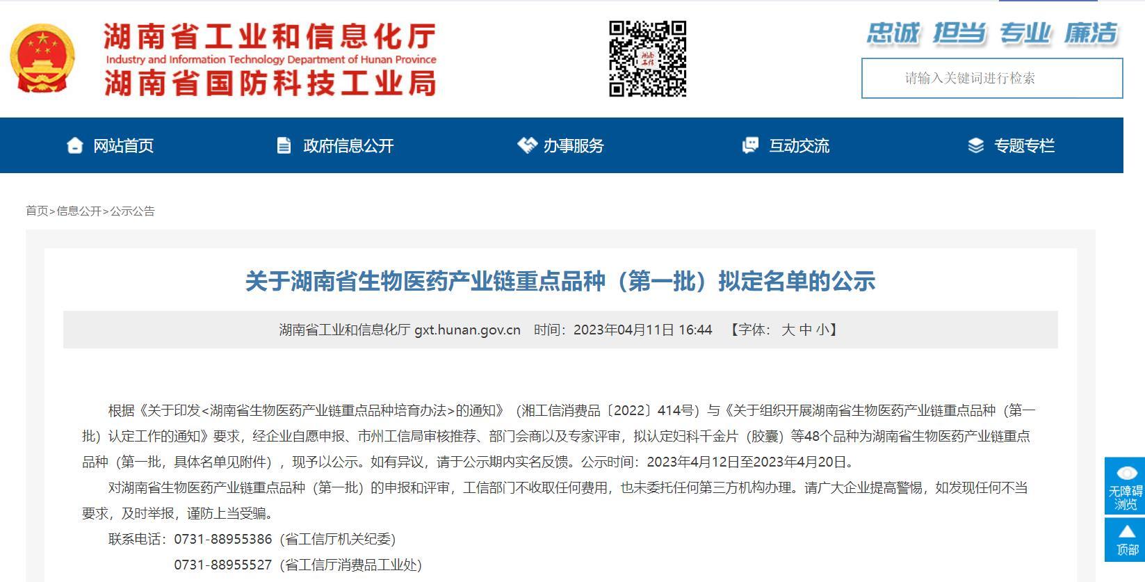 天劲强骨生血口服液入围湖南省生物医药产业链重点品种