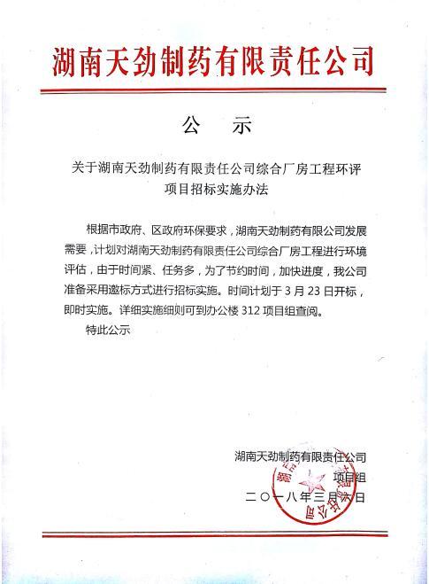 关于湖南天劲制药有限责任公司综合厂房工程环评项目招标实施办法