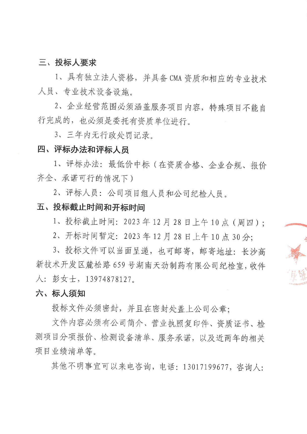 湖南天劲制药有限责任公司环境自行监测委托检测邀标公告