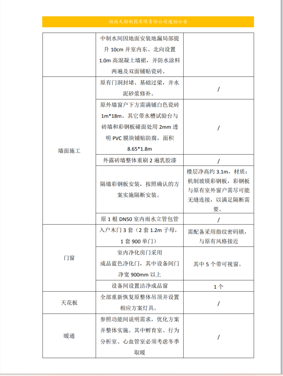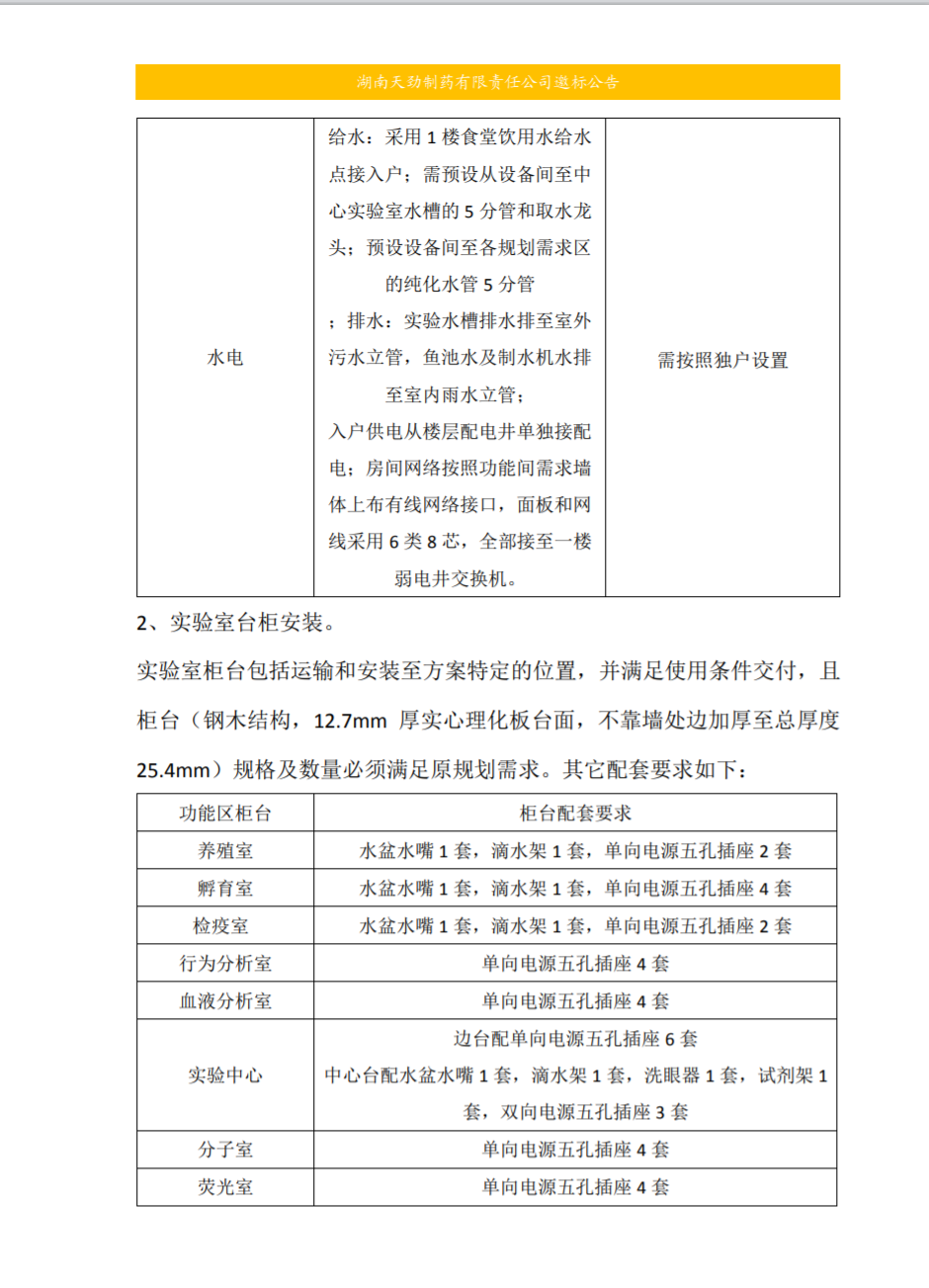 湖南天劲制药有限责任公司斑马鱼实验室改造装饰招标公示